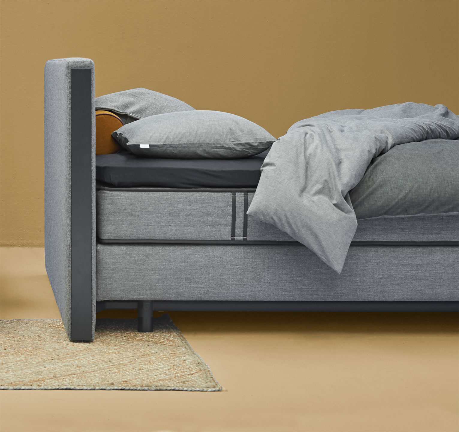 The upholstered Kiruna mattress is available in a single and in a double mattress.
