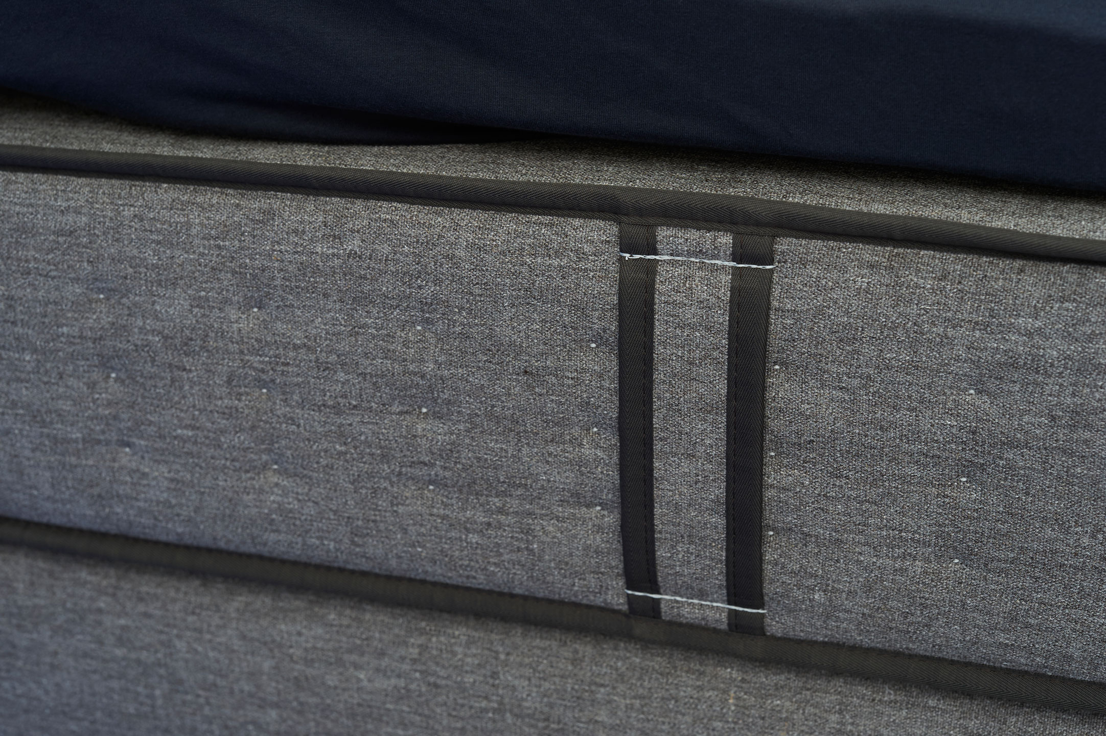 anthracite grey felt with 4 handles. Fits perfectly with box spring and mesh base.